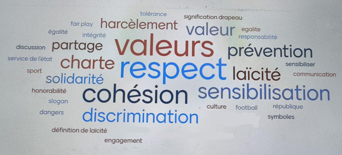 La matinée a permis d’aborder des thématiques assez générales sur la République, la laïcité, puis des sujets plus proches de leur club avec l’éthique sportive, les valeurs où chaque stagiaire a pris un temps pour (re)découvrir les valeurs de son club, et la façon dont elles sont véhiculées et mises en avant.